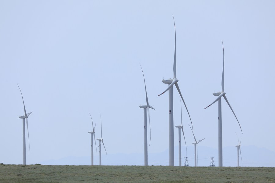 Wind turbines are seen at central Asia's largest wind farm built by a Chinese firm near the city of Zhanatas in the Zhambyl Region, Kazakhstan, May 24, 2021. (Photo by Kalizhan Ospanov/Xinhua)