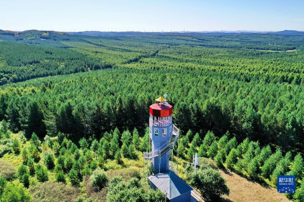 河北塞罕坝机械林场内的望海楼(8月23日摄,无人机照片)。新华社记者 牟宇 摄