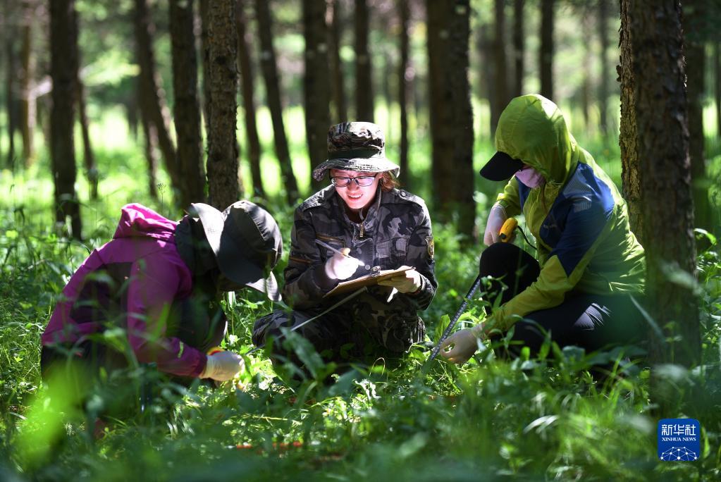 工作人员在河北塞罕坝机械林场采集数据(2017年7月12日摄)。新华社记者 王晓 摄