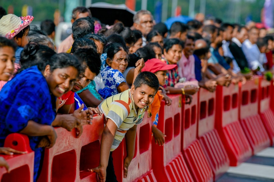 Residents in Barawakumbuka, Sri Lanka, wait for official opening of the extension of Southern Expressway, Feb. 23, 2020. (Xinhua)