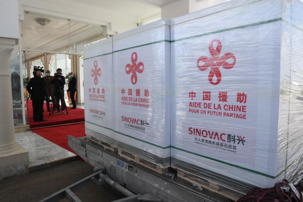 A batch of COVID-19 vaccines donated by China arrives at an airport in Tunis, Tunisia, on Feb. 22, 2022. (Xinhua/Adel Ezzine)