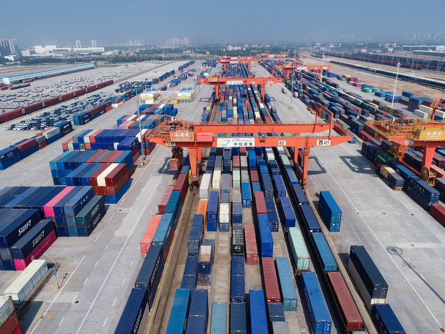 Aerial photo taken on July 29, 2022 shows Xi'an International Port in Xi'an, northwest China's Shaanxi Province. (Xinhua/Zhang Bowen)