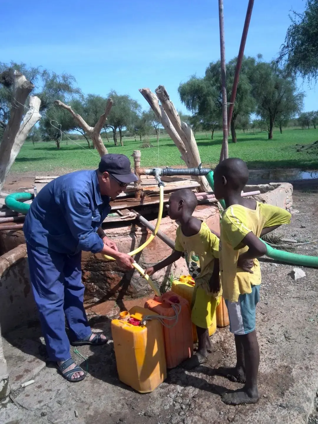 毛里塔尼亚班固-巴西克努公路项目竣工后,中方员工将施工水井赠予当地居民。(中国交建供图)