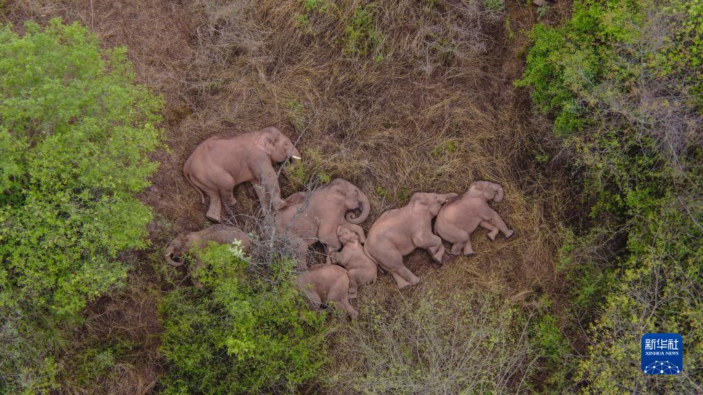 6月7日在云南省昆明市晋宁区夕阳彝族乡拍摄的野象(无人机照片)。新华社发