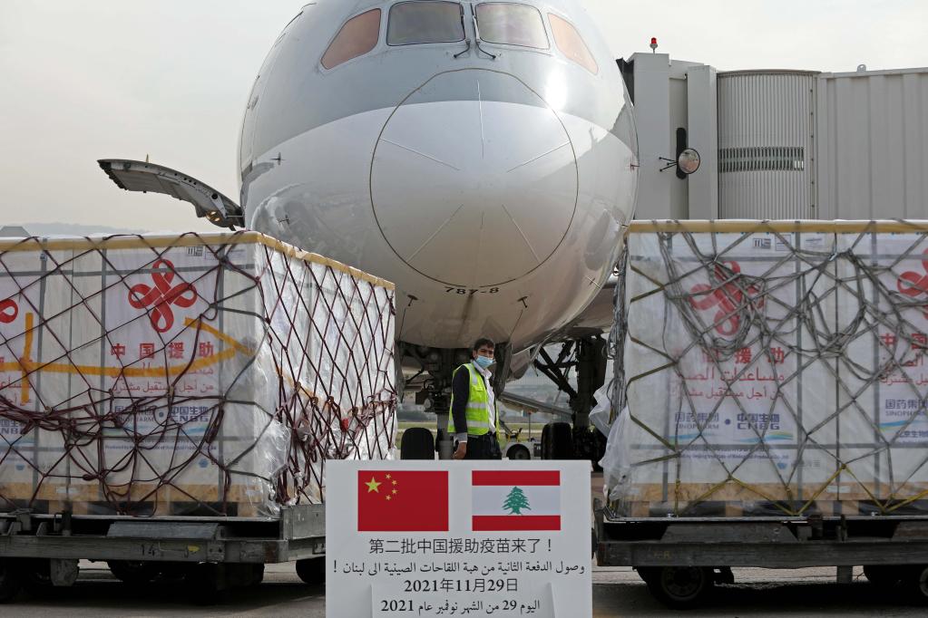 11月29日,中国援助黎巴嫩第二批新冠疫苗运抵贝鲁特拉菲克·哈里里国际机场。新华社发(比拉尔·贾维希摄)